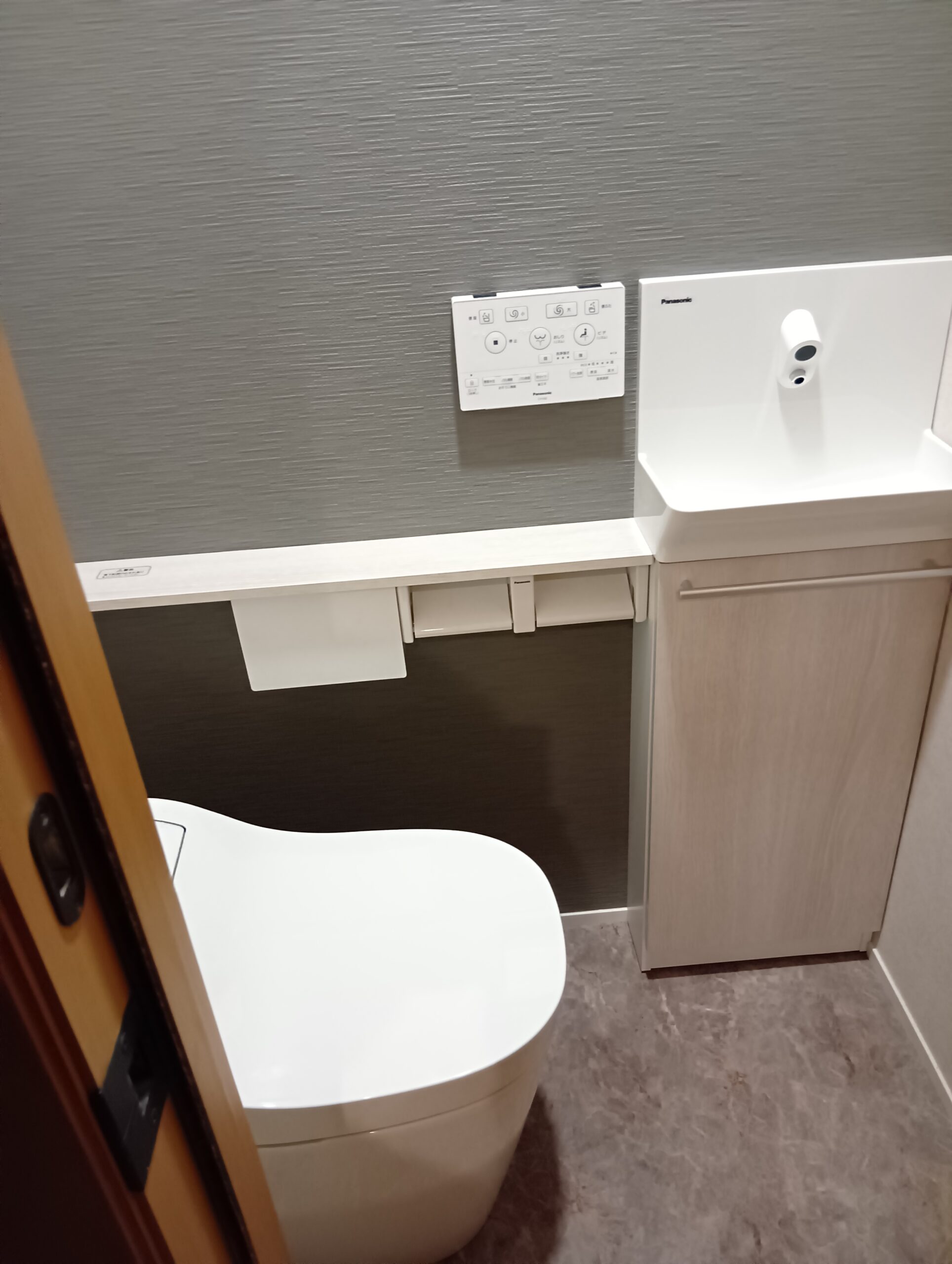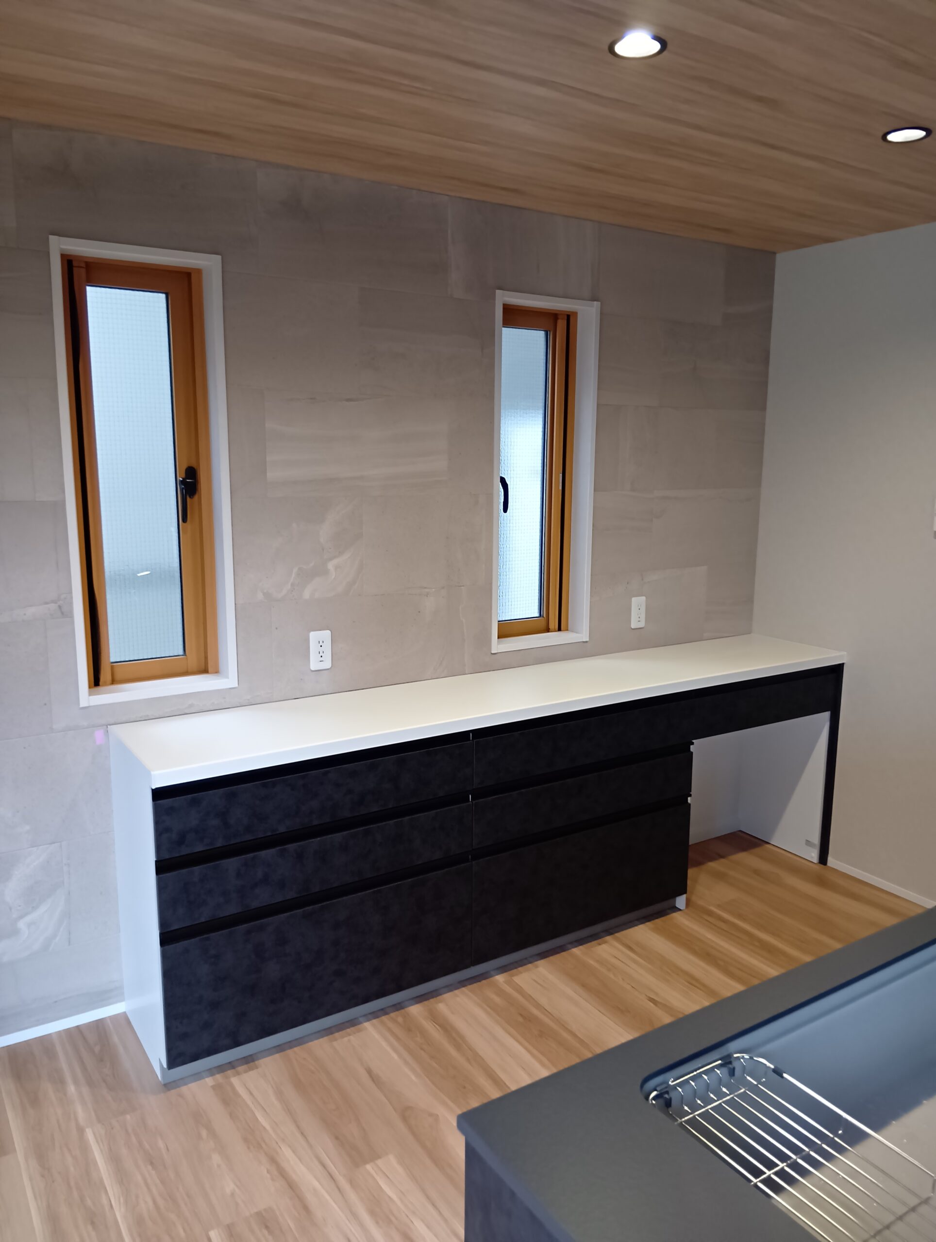 閉鎖的だったキッチンが、お子様を見守りながらお料理が出来る、オープンなペニンシュラキッチンへと生まれ変わりました。フロートタイプの洗面化粧台やタンクレストイレなど、こだわりの設備をご採用いただきました。(※下記の工期及び費用には外壁・外構工事も含みます)